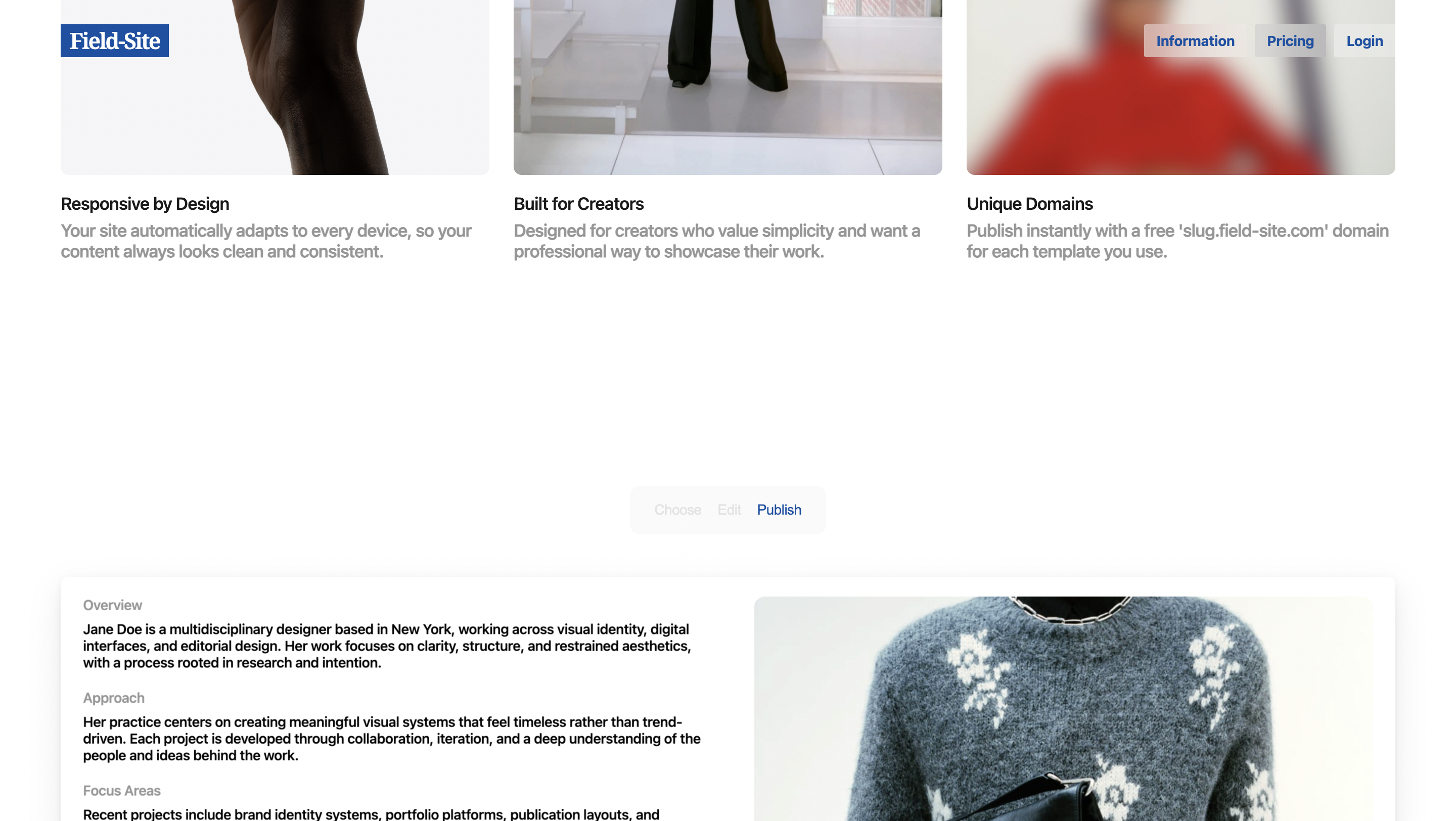 Field-Site is a simple website builder that lets you choose a template, fill out some fields, and publish your site instantly. There’s no design work or layout editing to struggle with. It’s made for people who just want an easy way to put their work online.